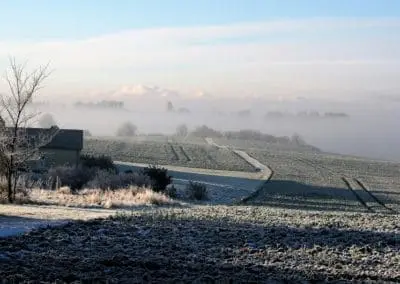 På Rødkærgård har vi to huse til udlejning. De er begge med udsigt fra hver sin terrasse mod vest. Her er frit udsyn til åbne vidder og solnedgang over fjorden.