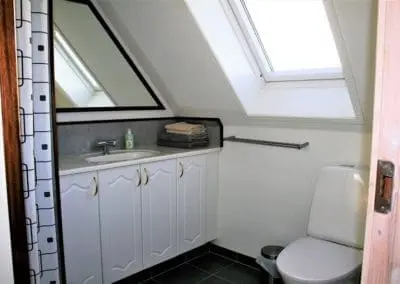 In the hallway outside the rooms, there is a fridge with a shelf for each room. Here you will also find a microwave oven and waterboiler for tea or coffee as well as our Honesty Bar.